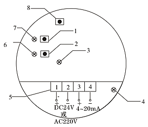 3、運(yùn)行/標(biāo)定狀態(tài)指示燈(D.綠色)標(biāo)定狀態(tài)時(shí)熄,運(yùn)行狀態(tài)時(shí)亮,出廠時(shí)熄。